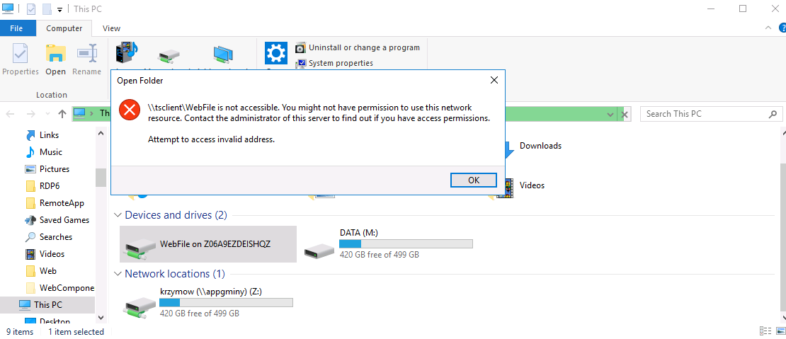 Cant write or open Webfolder. Look at printscreen.