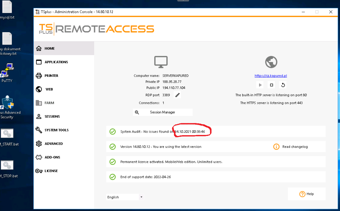 I must apologize. The topic name is out of date. After reinstalling tsplus for the first time, the message "alternateshell file not found" does not appear. There are only these two audit errors. Is it possible to see the audit run more deeply ?