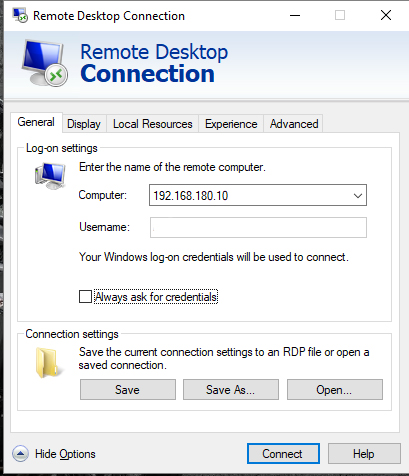 the mstsc image posted by admin shows the mstsc.exe connection dialog when you do not have any credentials saved for that server.