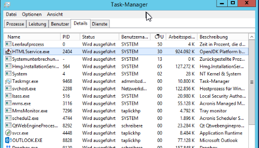 one of my TSplus servers has a serious problem with the process HTML5service.exe (OpenJDK platform binary). It consumes 30-50 % of CPU.