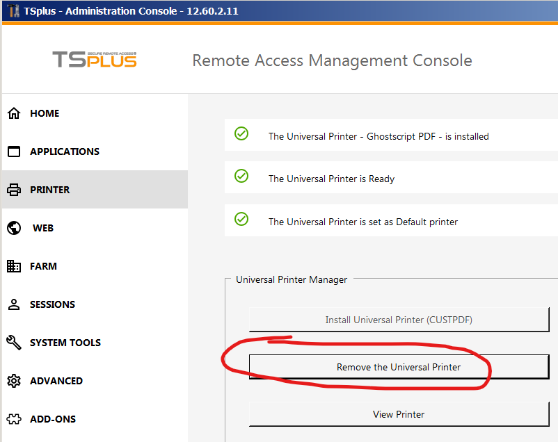 i have an TSplus installation where i don't want to use the universal printer. The universal printer came with the TSplus installation, so no entry in windows control app to uninstall it. I removed the universal printer with the AdminTool, but still every user has a process universalprinter.exe running.